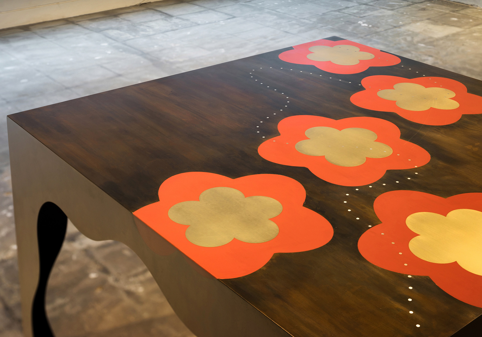 Graphic design for metal table tops (collaboration with studio super robot), 2018. 『花』 金属テーブル天板のグラフィックデザイン(studio super robot とのコラボレーション) 2018年